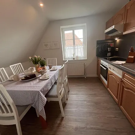Een complete keuken met een oven en een vaatwasser staan ter beschikking van de gasten. Wrixum Muehle bushalte is op minder dan 150 meter afstand van het appartement. Extra voorzieningen omvatten een terras.